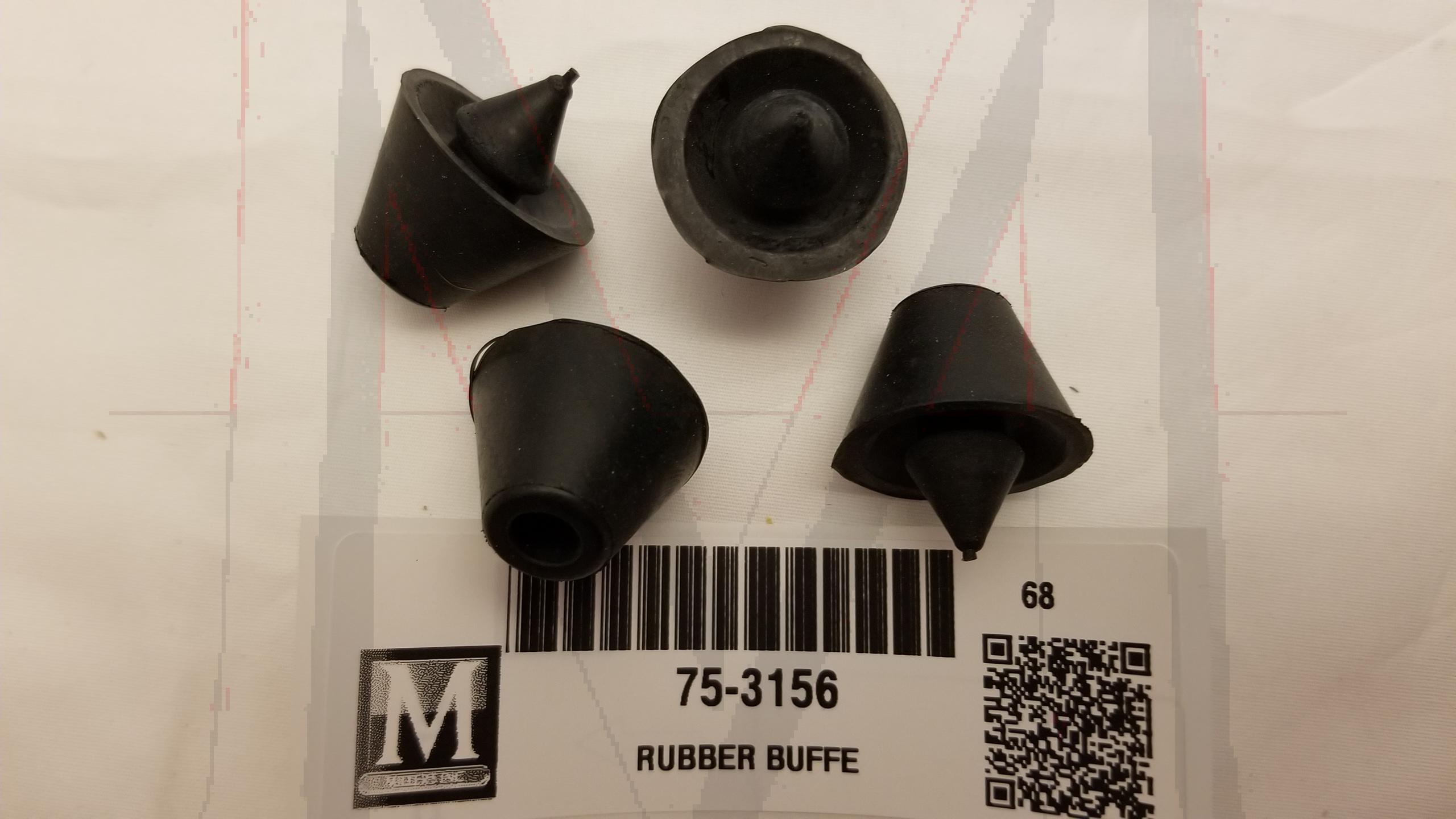 BLACK RUBBER BUFFER MOUNTED ON UNDERSIDE OF TRUNK LID IN THE CORNERS ABOVE THE TAIL LAMPS TO BUFFER BETWEEN TRUNK LID AND BODY. 2 PER CAR